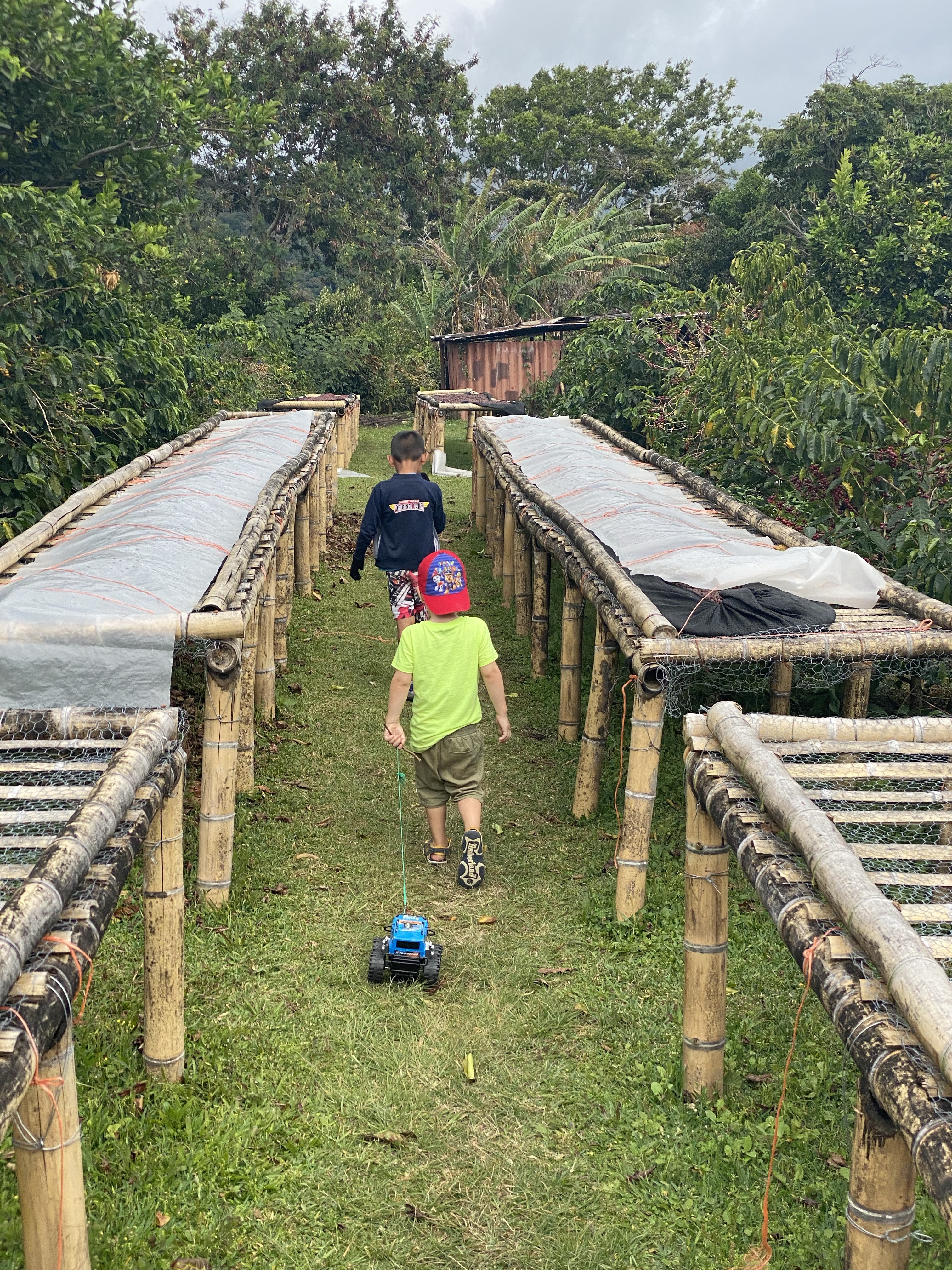 When we finally got there, Boquete was kind to us. A spring like climate in a beautiful setting surrounded by jungle clad mountains and of course, flowers. Our time there was spent doing a coffee tour at Finca Dos Jefes which was just delightful. James spent the time playing with some of the farm workers’ kids, so everyone had a fab time.