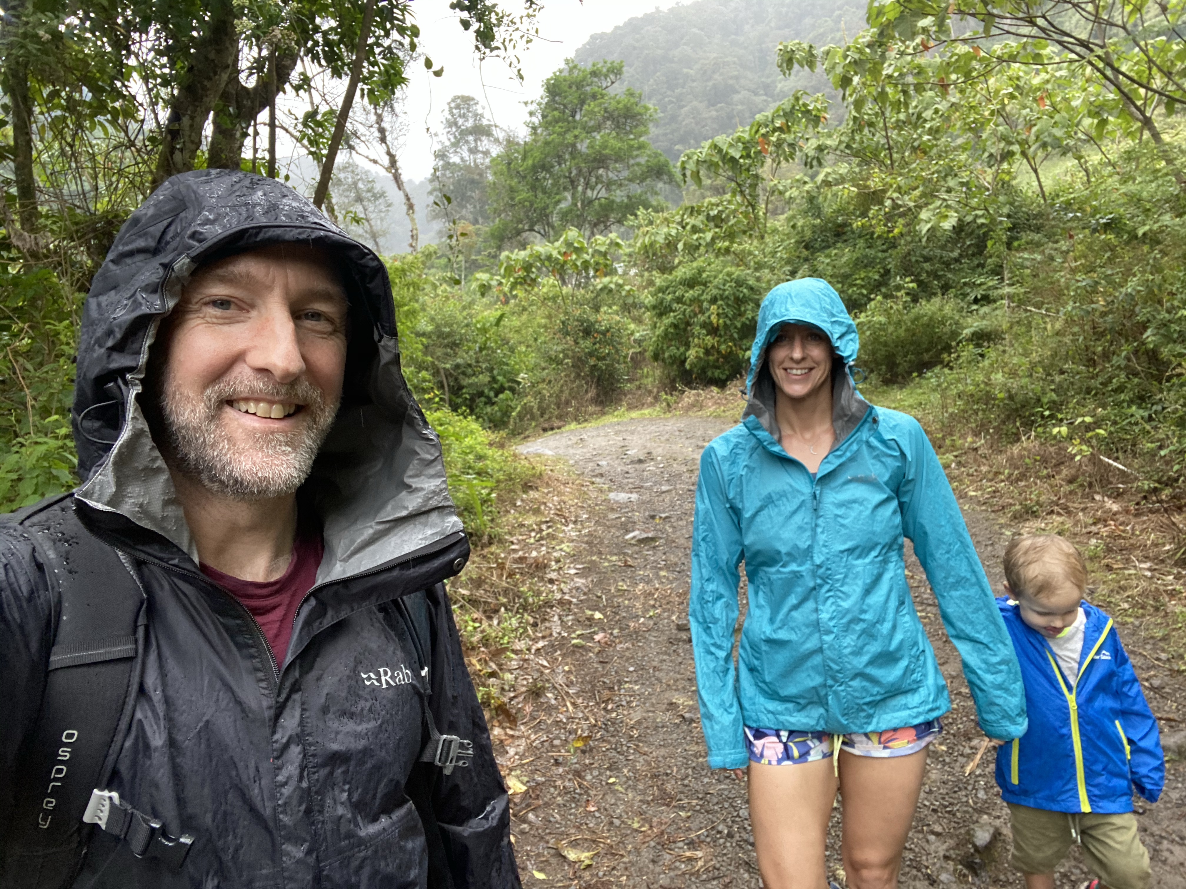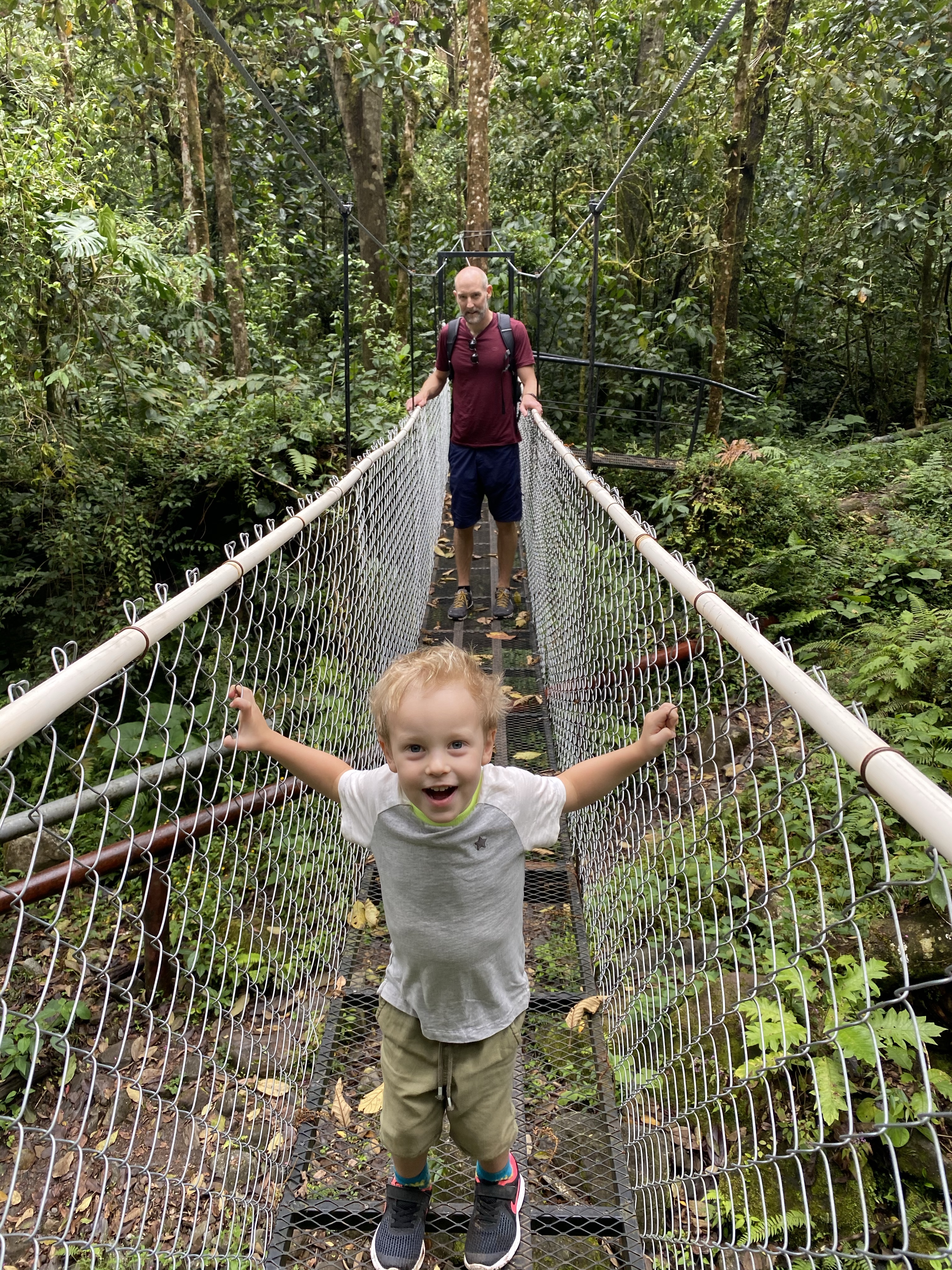 We also headed out on another waterfall hike up into the surrounding cloud forest. Whilst the waterfall itself was nothing special the trail was stunning and we even spotted a Resplendent Quetzal (not massively resplendent to be honest) and a small troupe of Howler monkeys. Once again James was a legend and walked a good 2km to the waterfall, but being a cloud forest it rained on our way back down. Who would have thought that having to put on a rain jacket to stay dry and warm would cause a meltdown?… 3 year old logic!