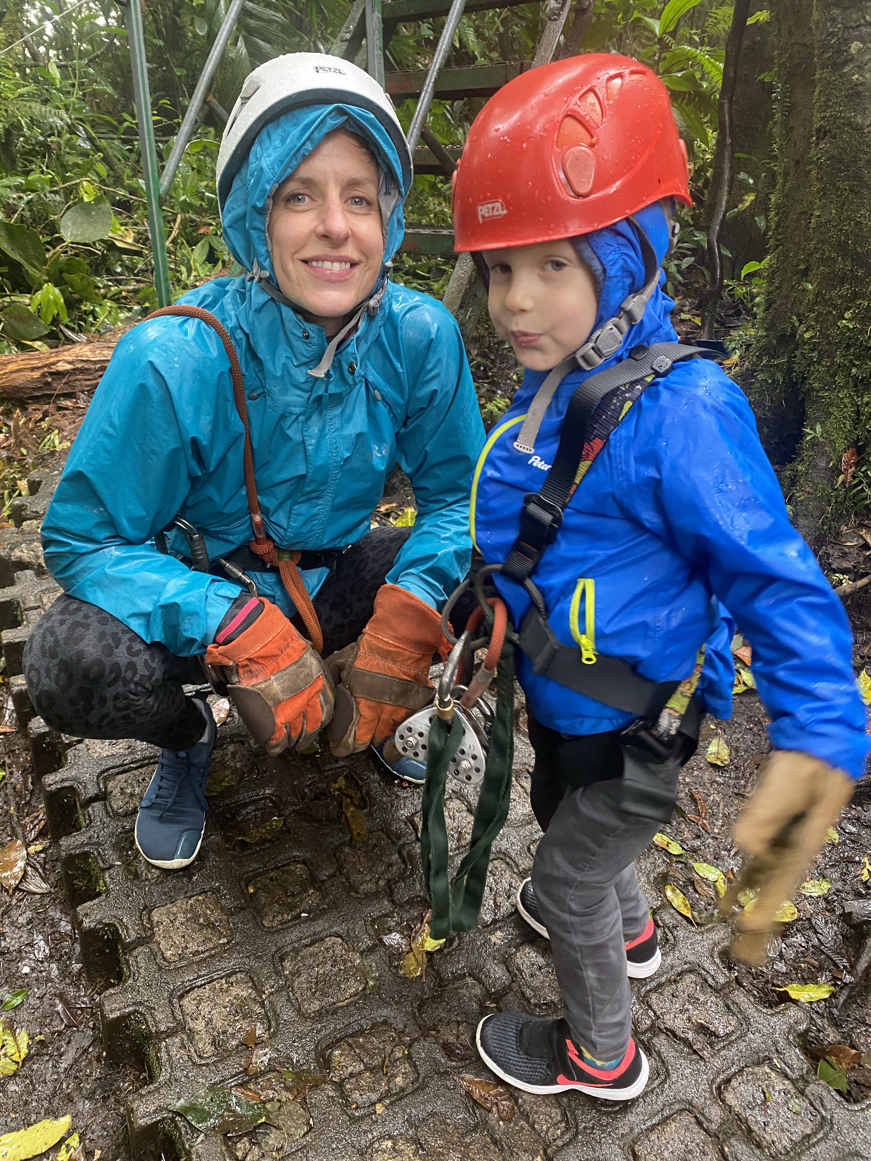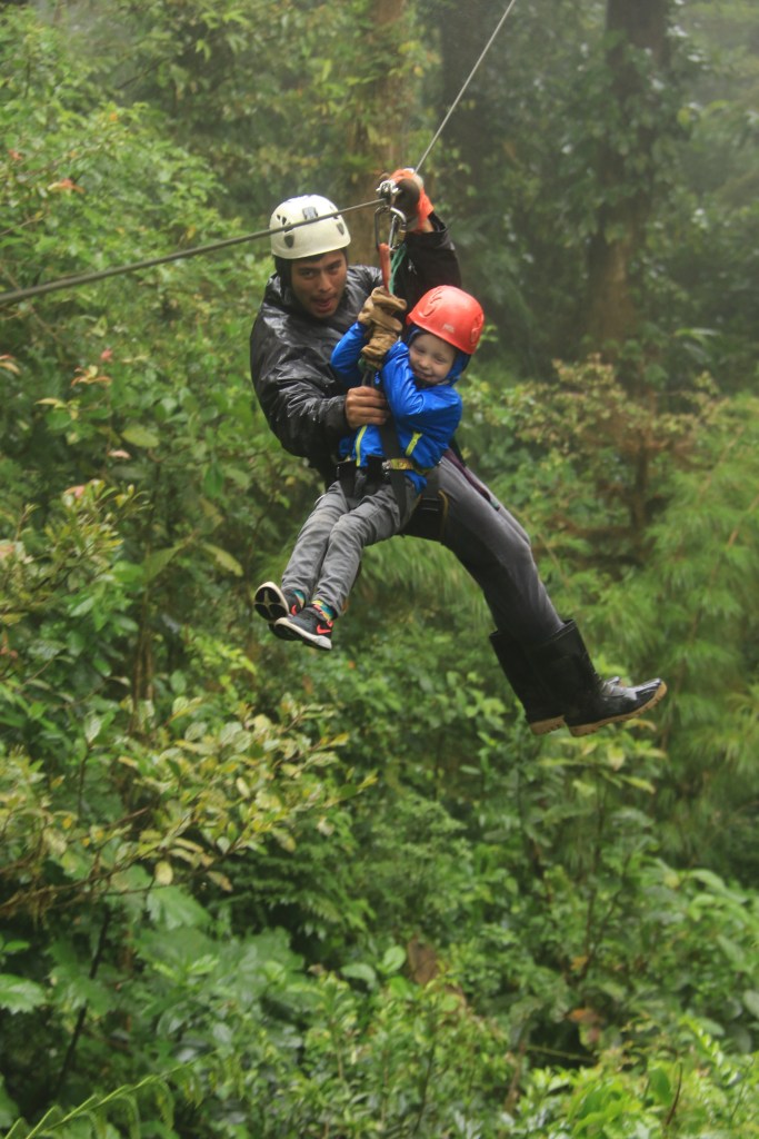Selvatura Adventure Park has 13 zip-lines through the forest canopy, one of which is a whopping 1km long! Thankfully for us they are happy to take toddlers, so James was paired up with his guide Kevin and off we went.