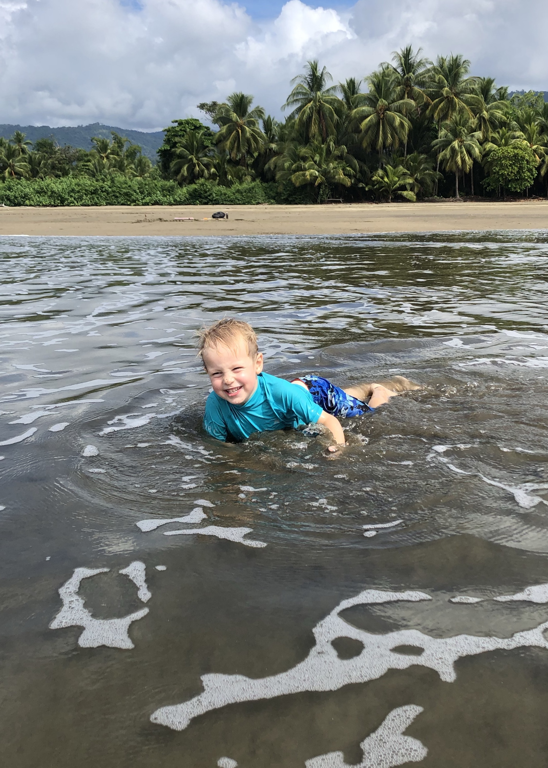 Jet lag firmly behind us we were having more relaxing evenings and in Matapalo James saw his first holiday sunset. Happily playing in the surf with his local pals he was super excited to see the ‘sun go for a swim’ in the Pacific Ocean. These are the special family times that I hope we all remember when we are back in Blighty. I won’t for a minute suggest that travelling with a toddler is simple but there are magical moments too.
