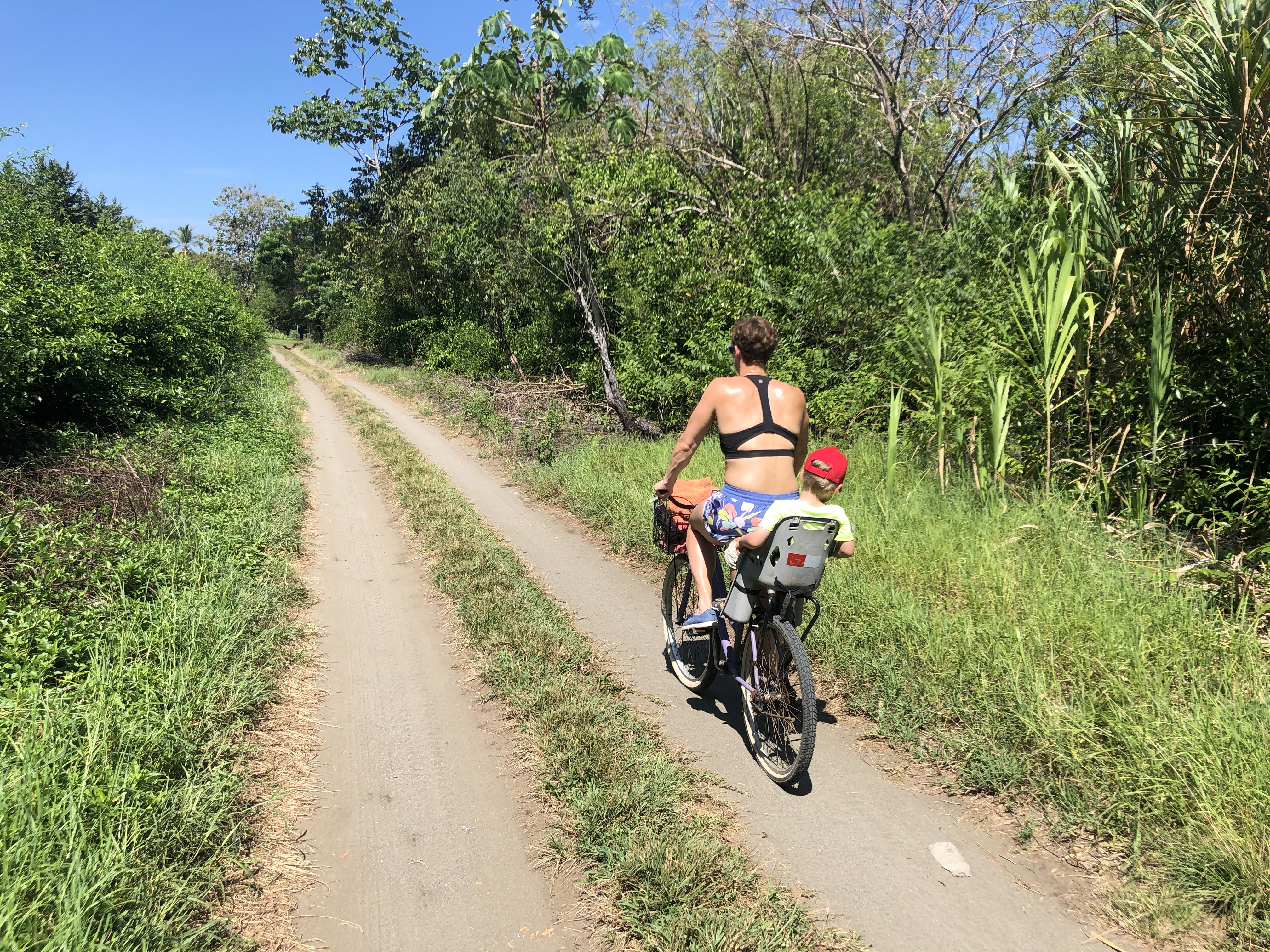 The following morning we had a brilliant impromptu bike ride on a dirt track along the coast and back down the beach. Annoyingly the bike we found with a child seat was too small for John so I got the pleasure of the headwind, sand sinking ride back to the guesthouse. It was hard work!