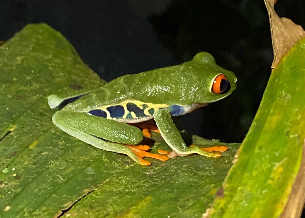 The stars of the show though were the red eyed tree frogs which emerged at dusk. Far more interesting than sloths as they actually move. In fact Lucy may have accidentally squashed one trying to brush it off James when it jumped onto him, although the details are unclear since it was so dark 😳