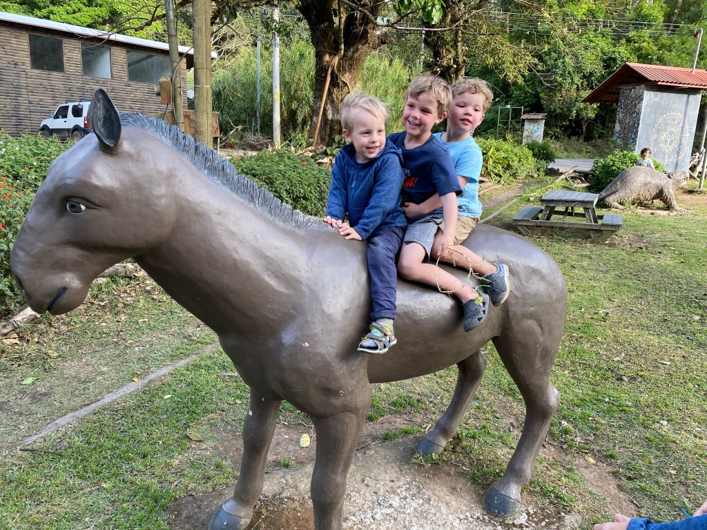 Back at the hostel James met a couple of new playmates, Simon and Desmond from northern Canada. We all (parents and kids) spent a wonderful couple of days together romping around local playgrounds, eating ice cream, hanging out in a nearby village square, exploring forest reserves and enjoying the sunset views over the Golfo de Nicoya.