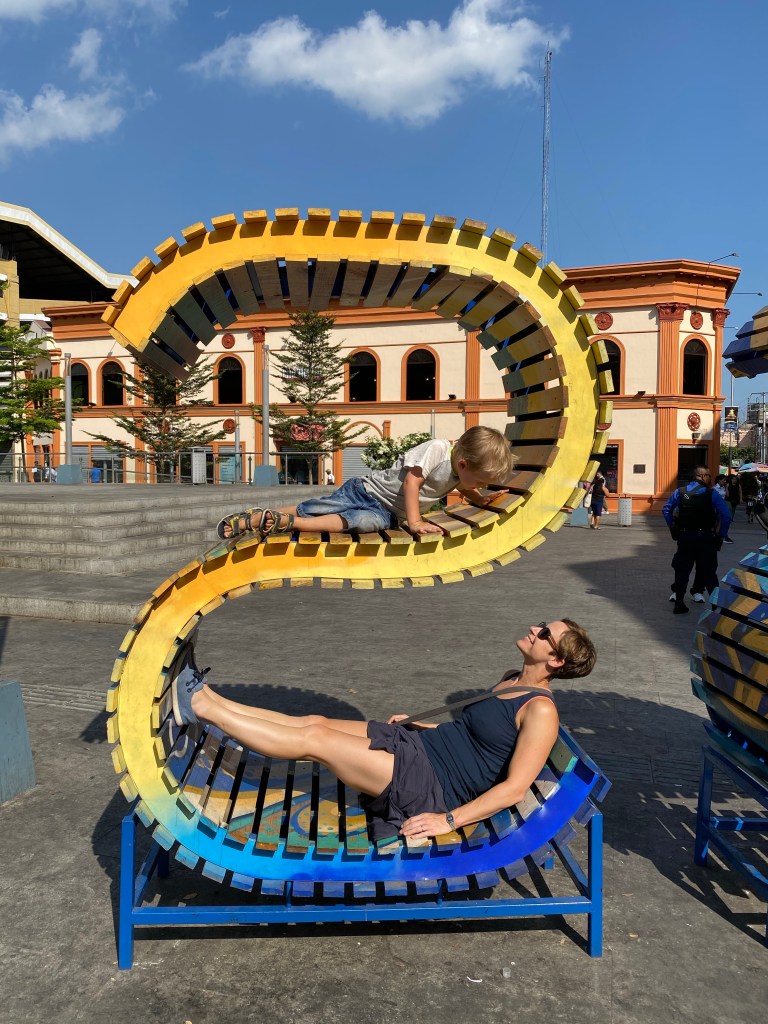 This was the first time in the trip we hit our winning combination of ‘holiday stuff’. A sociable guesthouse with some other gringos, local cool eating places, wildlife, beaches and the newest entrant…a playground. Happy days!