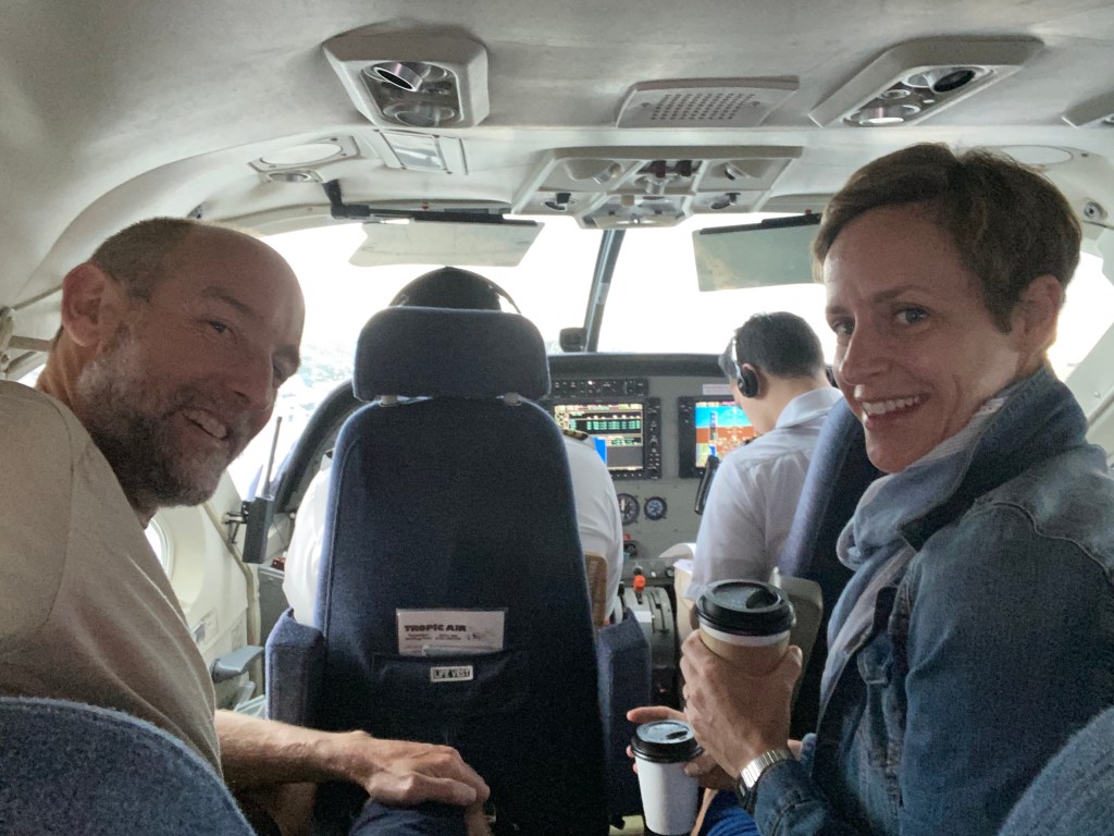 After we checked in at the airport in Roatan there was a bit of a surprise in store for us. There was only one aircraft on the runway and it was tiny! With only three others passengers we bagged seats directly behind the pilots. What a way to get to the next country. James however was more interested his impromptu carrot cake breakfast (the only thing available at 06:00 in the airport) and left our seats covered in crumbs… there’s no hiding the whodunnit on such a small plane 😳