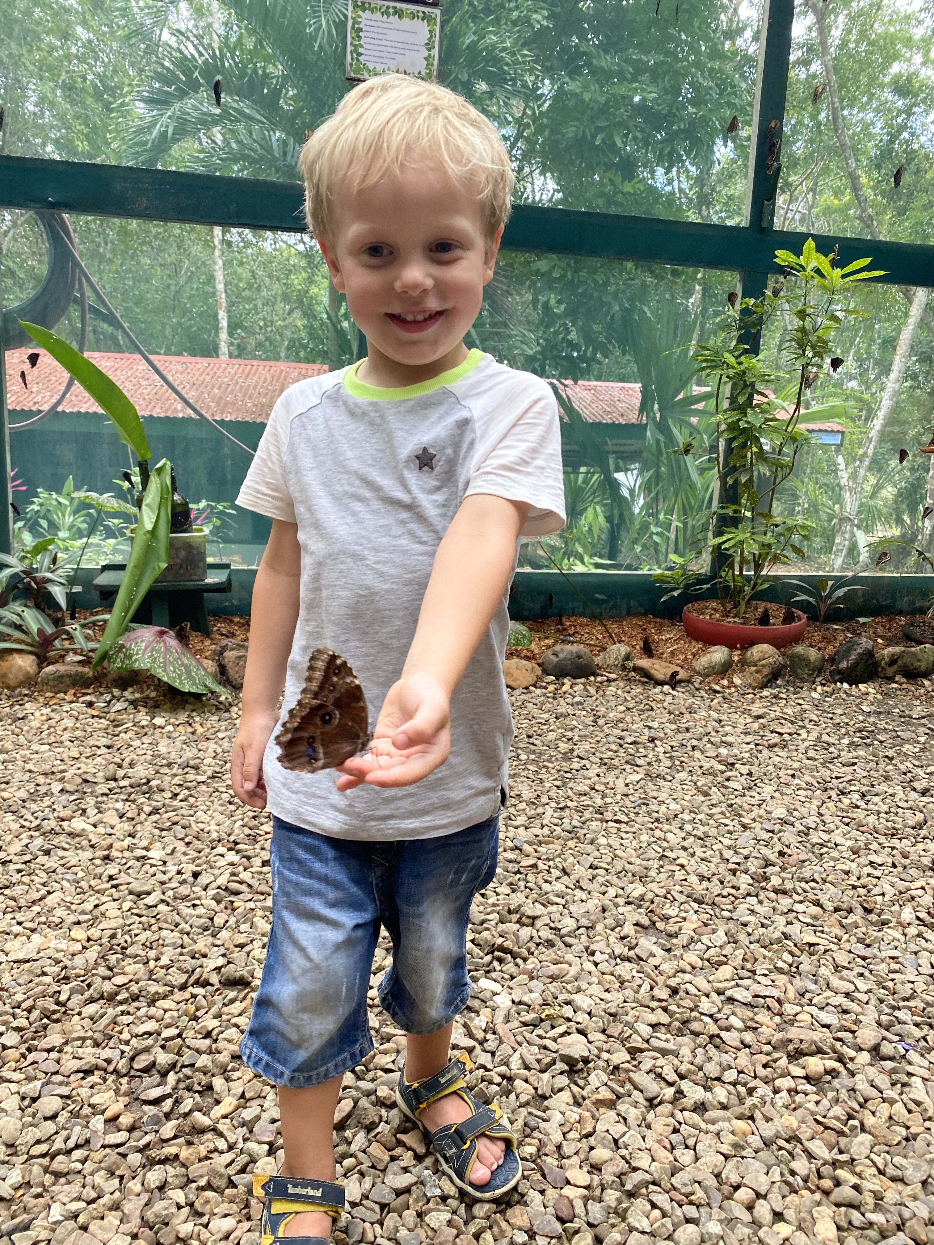 The rest of our time at Chaa Creek was spent lazing by the posh lodge pool, walking the many jungle trails and visiting an on-site butterfly farm which James surprised us again and loved.