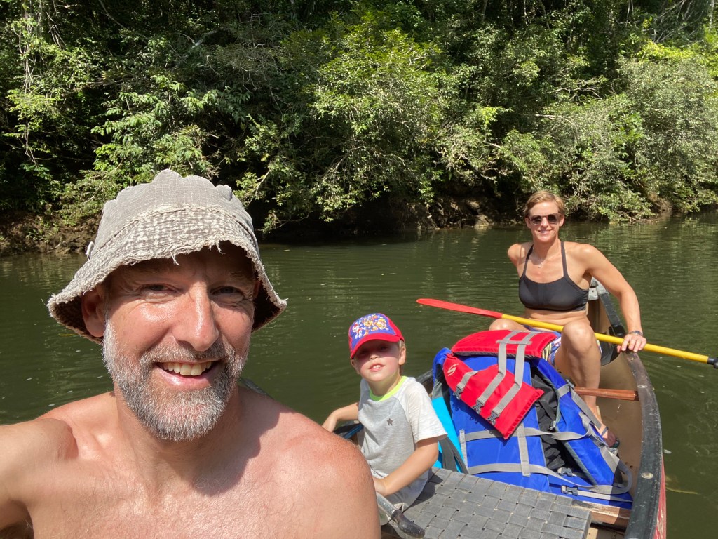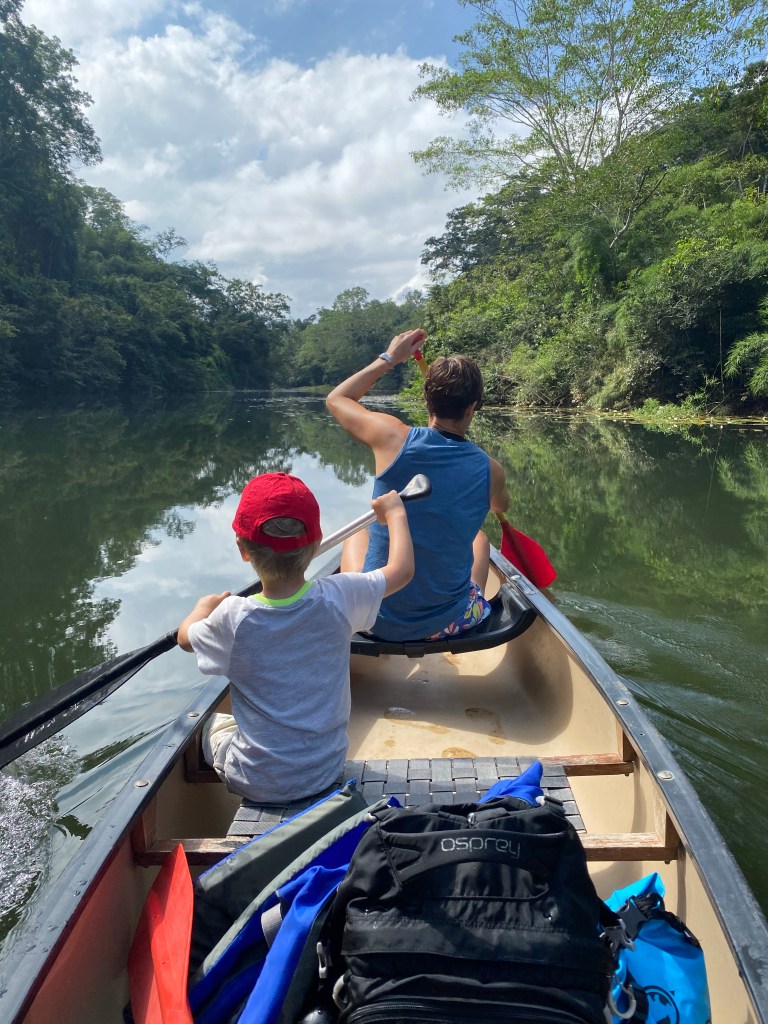 It turns out that filling our time with toddler friendly things to do in a jungle was easier than anticipated. The camp had canoes for guests to use so we spent a morning paddling up river spotting wildlife along the way. There were even a few light rapids to test our canoeing skills but we failed at the first hurdle and had to get out and push. As you can imagine James isn’t the most helpful in such situations. We made a pleasant lunch stop at a botanical garden then it was a leisurely float back downstream to camp.