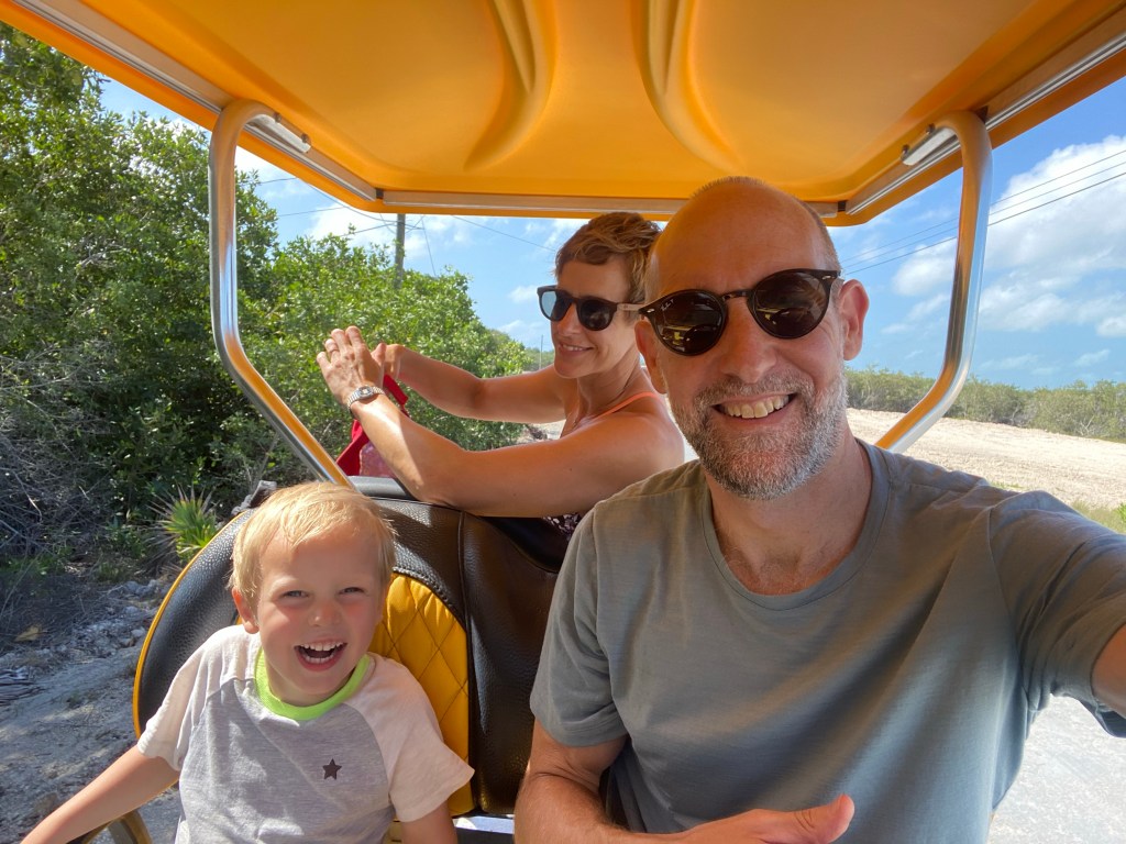 The main mode of transport on the island for locals and tourists alike are golf carts. So not wanting to miss out on the fun we hired one for a day and headed north along potholed roads to the ‘secret’ beach which was touted (so clearly not secret) as being the best on the island. It didn’t disappoint and James spent the day playing in the water with his two newfound friends from North Carolina.