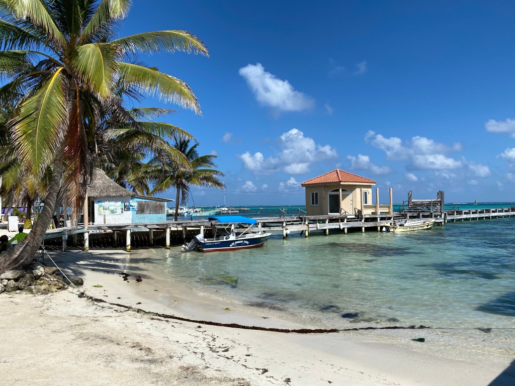 Our next stop was San Pedro town on the island of Ambergris Caye, one of the many small coral islands that line the Belize barrier reef. Considering that ambergris is a grey waxy substance produced by the digestive tracts of sperm whales you’d be forgiven for thinking it’s probably not really worth the 90 minute long water taxi ride from Belize City to get there. However it’s actually a beautiful tropical island surrounded by white sandy beaches, warm turquoise sea, with a friendly laidback Caribbean vibe.