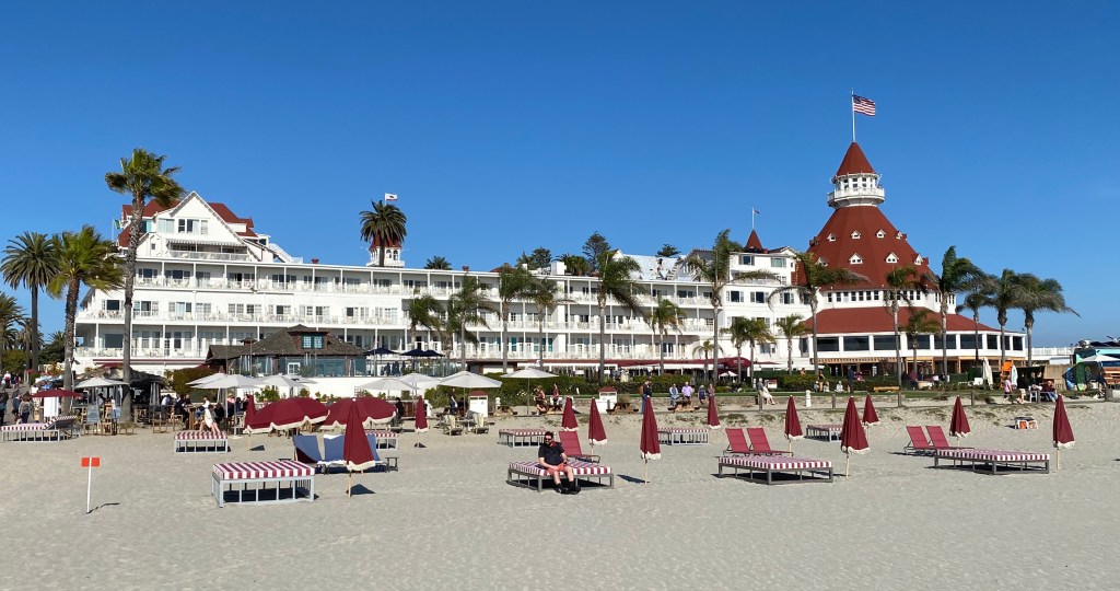 Coronado Island has an amazing beach alongside a naval base and is picture postcard US of A. Stars and Stripes flags hang from houses and political poster boards are the norm alongside manicured lawns and white board churches. It’s cute, clean and made us giggle.