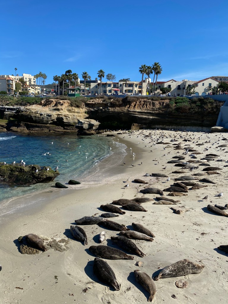 Our holiday home had a couple of bikes so we hired a trailer for James and set off to explore. Top of our list was La Jolla. John did an early morning dive in a kelp forest making friends underwater with sea lions and cormorants. James and I followed him up there on a ride which is a similar distance to the one we would normally ride on our commute to old work in Hastings. However I soon found out that a heavy toddler, trailer and California cruiser bike was frankly bloody hard work up any size of hill! La Jolla has a great coast line with clear cold seas and resident sea lions amongst other things. It also has nice coffee, restaurants and is just cute enough without being twee.